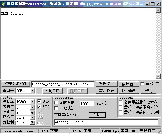 1. 檢查串口連接:運行“\工具\sscom\sscomv20.exe”,修改波特率為19200,打開開發(fā)板電源開關(guān),此時應該看到有“ZLIP