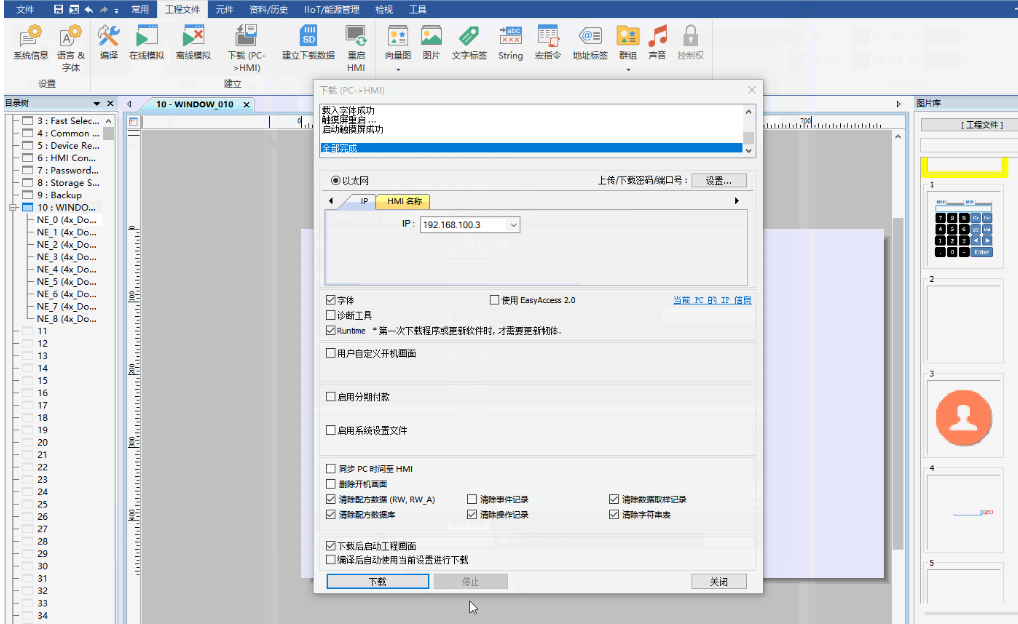 4.下載完成后,就可以通過觸摸屏控制網(wǎng)口風(fēng)機(jī)。