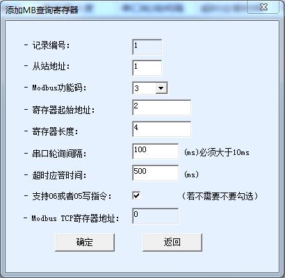 這個離線只要求高字節(jié)和低字節(jié)一樣,即可以設(shè)置:v*256+v,其中v≤255且v>=0。 只有第一條記錄的設(shè)置值是有效的,其它記錄仿造第一條記錄的參數(shù)。這里只看第一條記錄的參數(shù)還包括:串口輪詢間隔、超時應(yīng)答時間、支持06或者05寫指令。