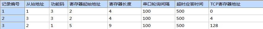 | 記錄編號 | 從站地址 | 功能碼 | 寄存器地址 | 長度 |