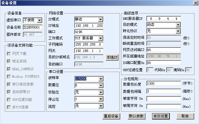 4.修改指定的串口服務(wù)器模塊的任何一個(gè)參數(shù)。