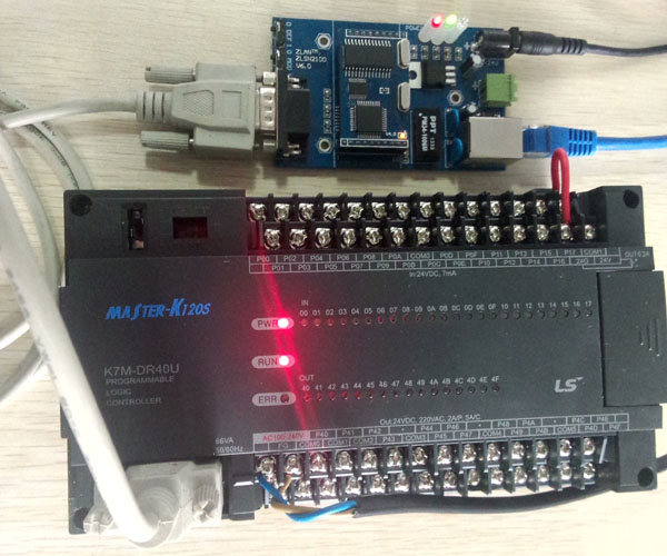 以下是卓嵐ZLSN2100和LG的Master-K120S型號PLC連接和進行遠程控制的實際連接圖