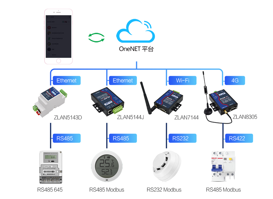這里主要介紹2類設(shè)備接入OneNET,第一類是串口設(shè)備,比如RS485/232設(shè)備,這些設(shè)備一般采用Modbus RTU或者645協(xié)議。此時(shí)使用串口轉(zhuǎn)JSON網(wǎng)關(guān)可以實(shí)現(xiàn)接入OneNET。