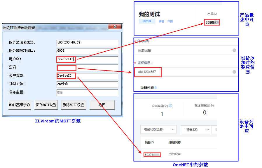 在MQTT配置對(duì)話中只需要填寫3個(gè)參數(shù)即可,其中的用戶名即產(chǎn)品概述中可查的產(chǎn)品ID,密碼即設(shè)備信息中可查的鑒權(quán)信息,客戶端ID即設(shè)備列表中可查的設(shè)備ID。配置好后,點(diǎn)擊“保存MQTT設(shè)置”,返回到第一個(gè)“固件與配置”對(duì)話框,點(diǎn)擊“下載”按鈕,下載配置到網(wǎng)關(guān)內(nèi)部,網(wǎng)關(guān)隨后重啟。此時(shí)看到官網(wǎng)的TCPLink燈藍(lán)色點(diǎn)亮,并且在OneNET上看到這個(gè)在線了。