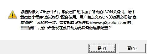 云平臺(tái)選擇“卓嵐云”。然后點(diǎn)擊“JSON上發(fā)”進(jìn)入下面的JSON上發(fā)配置。返回后需要點(diǎn)擊“保存JSON設(shè)置”和“返回”。
