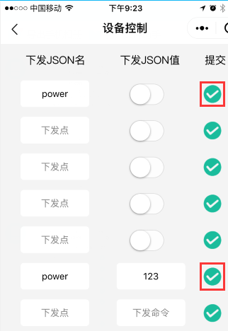 任意控制里面提供兩類(lèi)設(shè)置,先看第6行,在“下發(fā)JSON名”中輸入需要下發(fā)的JSON節(jié)點(diǎn)的名字,這里是“power”,然后輸入需要設(shè)置的值,這里是“123”,然后點(diǎn)擊右邊的“勾”,此時(shí)發(fā)現(xiàn)遠(yuǎn)程設(shè)備的Modbus寄存器已被設(shè)置為“123”。