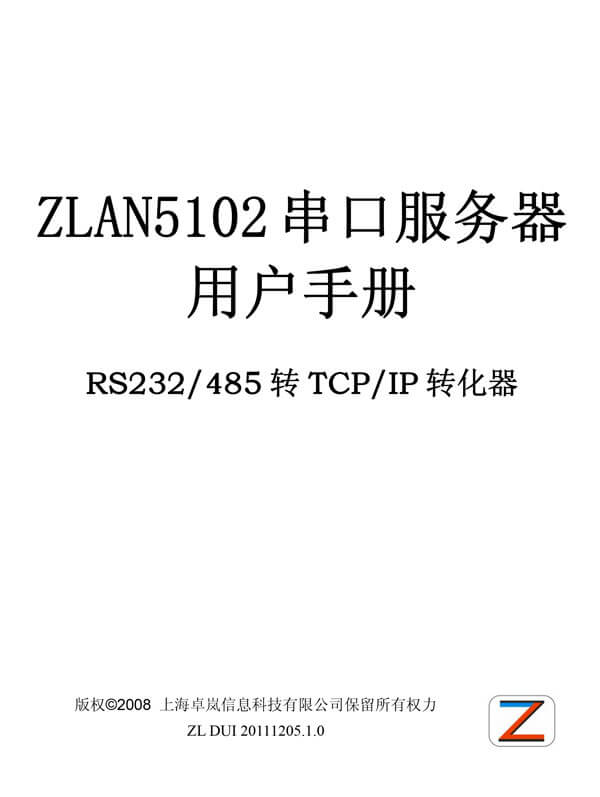 ZLAN5102串口服務(wù)器是上海卓嵐信息科技有限公司開(kāi)發(fā)的一款RS232/485和TCP/IP之間協(xié)議轉(zhuǎn)化器。該串口服務(wù)器可以方便地使得串口設(shè)備連接到以太網(wǎng)和Internet,實(shí)現(xiàn)串口設(shè)備的網(wǎng)絡(luò)化升級(jí)。