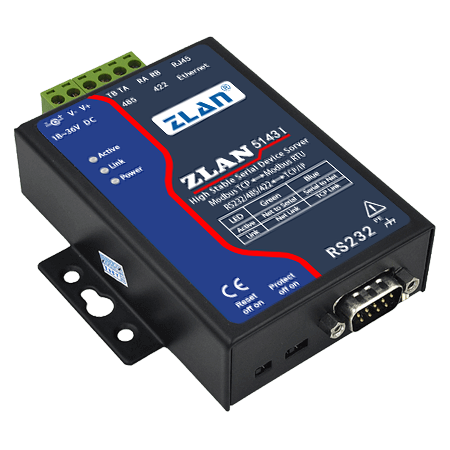 ZLAN5143I的RS485具有驅(qū)動(dòng)256個(gè)負(fù)載的能力,和驅(qū)動(dòng)32個(gè)負(fù)載的產(chǎn)品相比,可以實(shí)現(xiàn)更多設(shè)備數(shù)據(jù)監(jiān)控能力,節(jié)約了成本。ZLAN5143I具有RS232/485/422三種接口形式。輸入電壓可以提供DC Q2.1插孔或接線端子方式,輸入電壓為18~36V(也可以定制12V產(chǎn)品)??膳鋫鋵?dǎo)軌安裝配件。