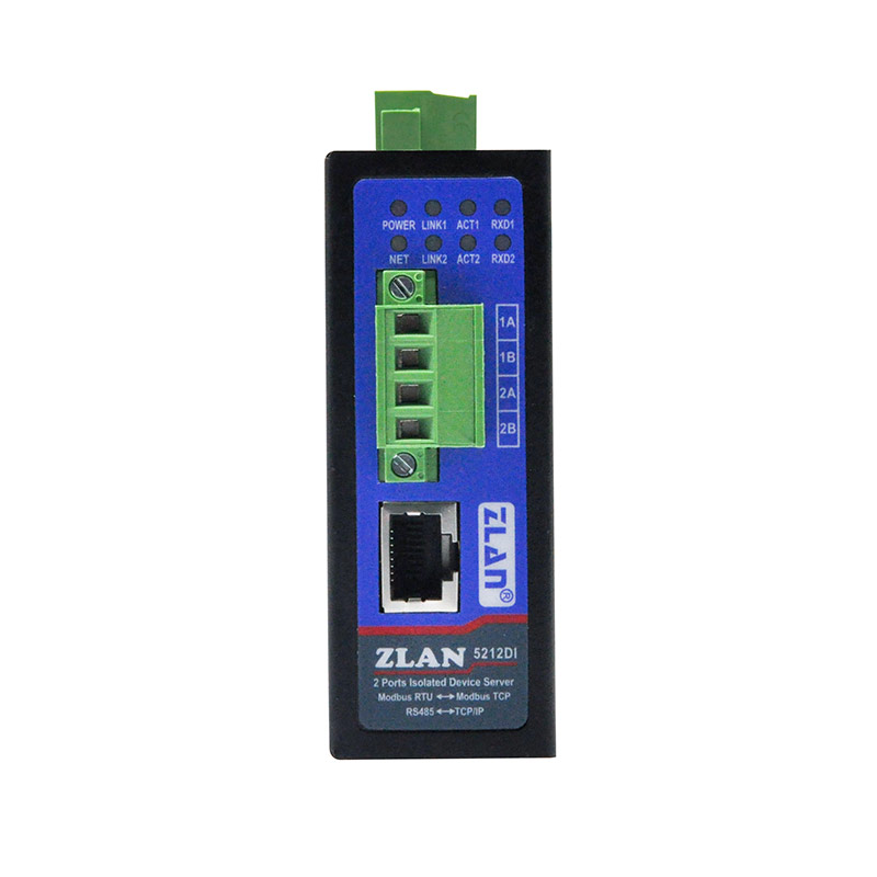 ZLAN5212DI可以實現(xiàn)2路TCP/IP協(xié)議到RS485的轉(zhuǎn)化,2路同時工作且可以配置為不同的波特率??蓪崿F(xiàn)通過網(wǎng)絡(luò)對485設(shè)備進行數(shù)據(jù)采集,網(wǎng)絡(luò)端可以使用虛擬串口連接串口軟件或者直接TCP/IP通訊的軟件。