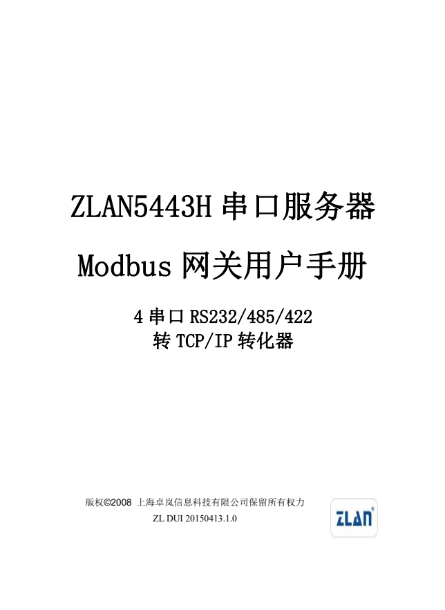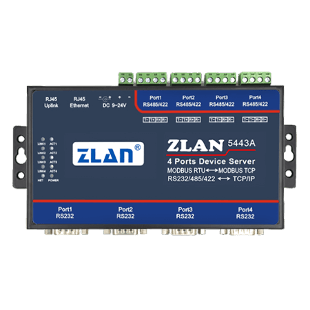 ZLAN5443H是上海卓嵐信息科技有限公司開發(fā)的新一代4串口服務(wù)器??梢詫?shí)現(xiàn)4路串口數(shù)據(jù)轉(zhuǎn)TCP/IP,支持兩個(gè)10M/100M以太網(wǎng)口。ZLAN5443H支持Modbus TCP轉(zhuǎn)Modbus RTU的Modbus網(wǎng)關(guān)功能。Modbus網(wǎng)關(guān)支持多個(gè)Modbus 客戶端連接上同時(shí)讀取數(shù)據(jù),即“多主機(jī)”功能。