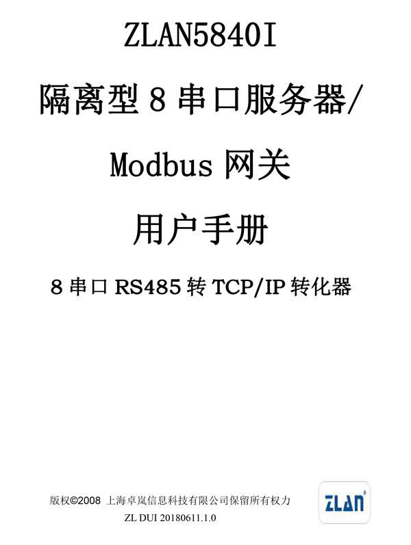 ZLAN5840I是上海卓嵐信息科技有限公司開(kāi)發(fā)的新一代RS485隔離型8串口服務(wù)器/Modbus 網(wǎng)關(guān),可以有效的隔離RS485總線上的干擾對(duì)設(shè)備工作的影響,保證設(shè)備的穩(wěn)定性。適合RS485總線有干擾的環(huán)境下使用。內(nèi)置電源浪涌保護(hù)。