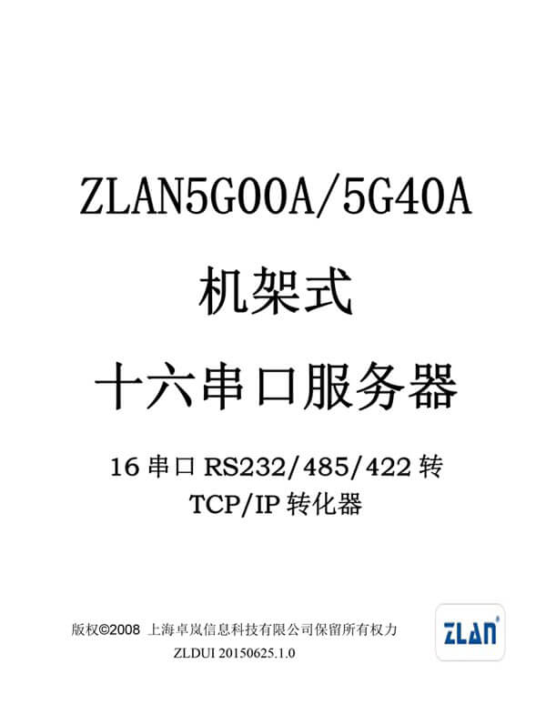 ZLAN5G00A-8串口服務器是上海卓嵐信息科技有限公司開發(fā)的一款機架式8串口RS232/485/422和TCP/IP之間協議轉化器。ZLAN5G00A-8支持8個RS232串口、16個RS485、RS422串口,且RS232支持流控。通過一根網線連接到ZLAN5G00A-8,實現8個串口同時全雙工工作,每一個串口的功能和單串口服務器ZLAN2100/3100相同。每路串口可作為TCP服務器、TCP客戶端、UDP、UDP組播。ZLAN5G00A是多串口聯網的理想選擇。