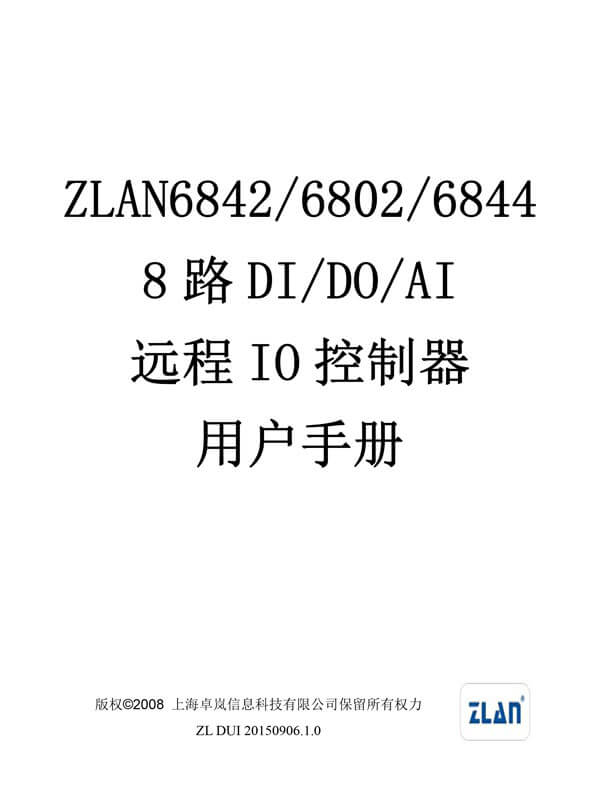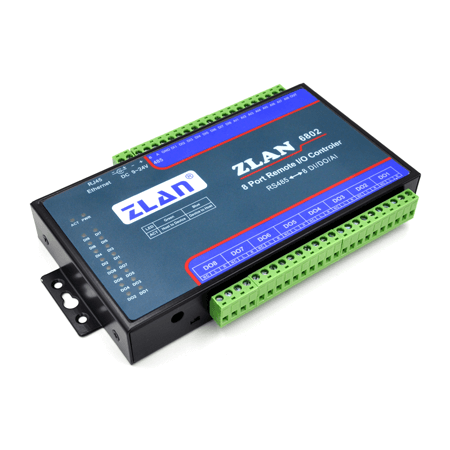 ZLAN6842、ZLAN6802、ZLAN6844是繼ZLAN6042之后上海卓嵐信息科技有限公司推出的8路遠(yuǎn)程IO控制器。其控制的路數(shù)從6042 的4路擴(kuò)展到8路,含有8路DI、8路DO,8路AI輸入。其中DI支持干節(jié)點(diǎn)和濕節(jié)點(diǎn),帶光耦隔離;DO為繼電器輸出,具有5A 250VAC或5A 30VDC的控制能力;AI輸入中的前4路支持0~5V電壓量輸入,后4路支持4~20mA電流量輸入,精度10位。ZLAN6842、ZLAN6802、ZLAN6844分別支持以太網(wǎng)、RS485、Wifi這3種形式的通信方式。
