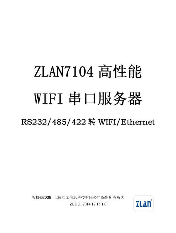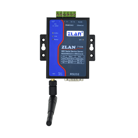 ZLAN7104是上海卓嵐繼ZLAN7100、ZLAN7142之后推出的又一款WIFI串口服務器。和ZLAN7142類似ZLAN7104也是一款高性能的WIFI串口服務器,但是7104的以太網(wǎng)和WIFI能夠同時使用,且配置也更加方便。7104定位在高穩(wěn)定性、豐富功能,適用于實時性、穩(wěn)定性高的工業(yè)領域,特別適合于PLC等設備的無線遠程監(jiān)控。