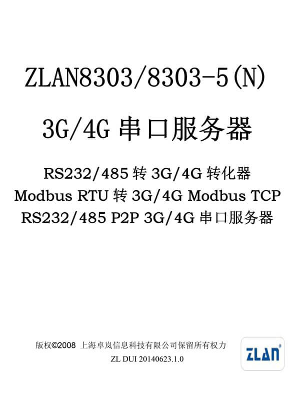 ZLAN8303系列是上海卓嵐繼ZLAN8100之后推出的3G/4G聯(lián)網(wǎng)解決方案。其中包含有6種子型號,分別是支持電信卡3G型號8303、支持5模的8303-5、支持7模的8303-7。其中8303N、8303N-5、8303N-7是支持P2P功能的對應產(chǎn)品。另外所有的產(chǎn)品都支持Modbus功能、自定義注冊包心跳包功能。