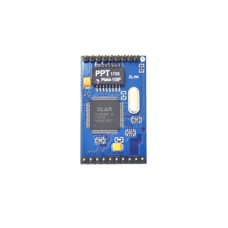 ZLSN2003是上海卓嵐開發(fā)的新一代串口轉(zhuǎn)以太網(wǎng)嵌入式模塊。該模塊功能強(qiáng)大,其基本功能是實(shí)現(xiàn)串口聯(lián)網(wǎng)的方便性,即只要和用戶的串口TTL電平的串口連接,ZLSN2003就可以將數(shù)據(jù)發(fā)送到基于TCP/IP/UDP的網(wǎng)絡(luò)服務(wù)器上。默認(rèn)情況下串口和以太網(wǎng)之間是透明傳輸協(xié)議,即串口發(fā)送什么,網(wǎng)絡(luò)就收到什么數(shù)據(jù),不會(huì)數(shù)據(jù)格式轉(zhuǎn)化。ZLSN2003內(nèi)部已經(jīng)集成網(wǎng)絡(luò)變壓器,外圍電路非常簡(jiǎn)單。