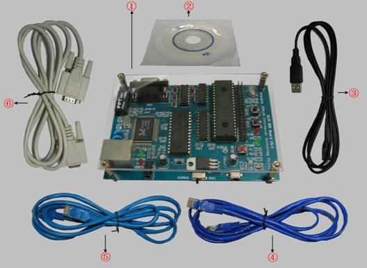 2. 硬件電路板及其相關(guān)連接線:用此硬件可以建立嵌入式TCP/IP實(shí)驗(yàn)環(huán)境。