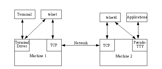 The Telnet (telecommunications network) program is intended to provide a remote login or virtual terminal capability across a network. In other words, a user on machine A should be able to log into machine B anywhere on the network, and as far as the user is concerned, it appears that the user is seated in front of machine B. The Telnet service is provided through TCP's port number 23 (see Table 4.1 or Appendix D, "Well Known Port Numbers," for the TCP port numbers). The term Telnet is used to refer to both the program and the protocol that provide these services.