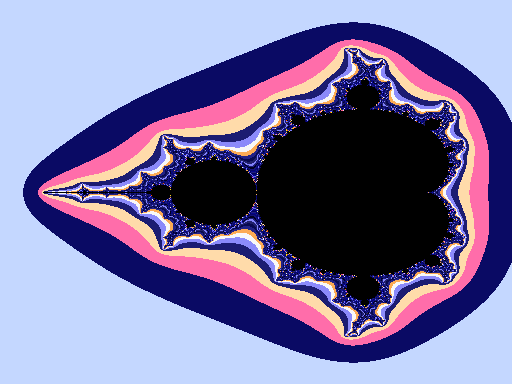 Complete applications that provide this capability to run local X and Motif windows on a Windows, Windows 95, or Windows NT machine are available from several commercial vendors. For example, Figure 6.4 shows an application running on a remote server called mandel that draws Mandelbrot figures. The server has been instructed to display the window on the local Windows for Workgroups machine using an X client package for Windows machines. The server passes all information about the size, position, and colors of the window, as well as instructions for drawing the contents to the local X client. The window appears on the Windows for Workgroups machine exactly as it would on the UNIX server.