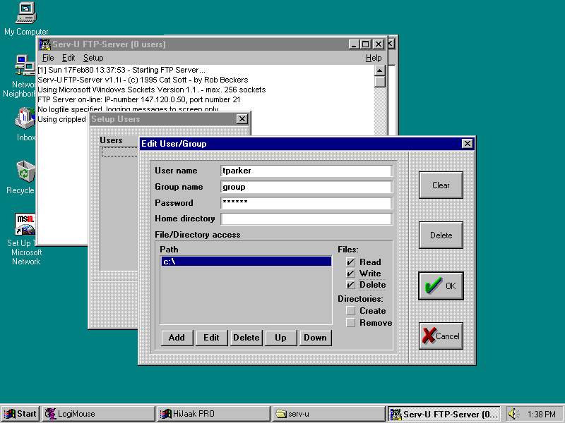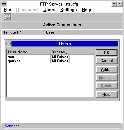 Figure 6.3. Using Telnet from a Windows for Workgroups machine.
