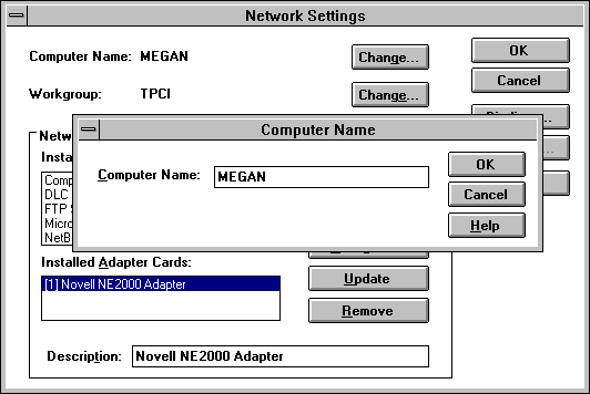 Windows NT has TCP/IP services built into the basic distribution. On a Windows NT system, the host name is specified through the Network dialog opened from the Control Panel, as shown in Figure 7.3. Both the Windows NT and Windows 3.x systems enable a change in the host name to be made effective immediately, although a system reboot is recommended to clear all configuration information held in memory.